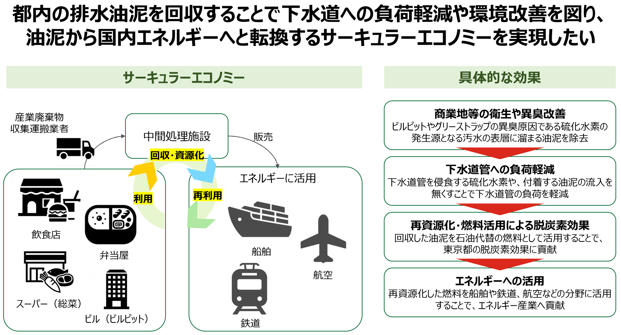 当社がアールイー株式会社(東京都豊島区)とともに進めてきた東京都における排水油泥のバイオ燃料化の社会実装事業について、東京都「GX関連産業創出へ向けた早期社会実装化支援事業」に採択されました。本事業では、これまで産業廃棄物として扱われてきた排水油泥を回収・処理し、FAME(脂肪酸メチルエステル)をはじめとしたバイオ燃料として活用することで、都市の脱炭素化・資源循環型社会の構築に貢献することを目指します。